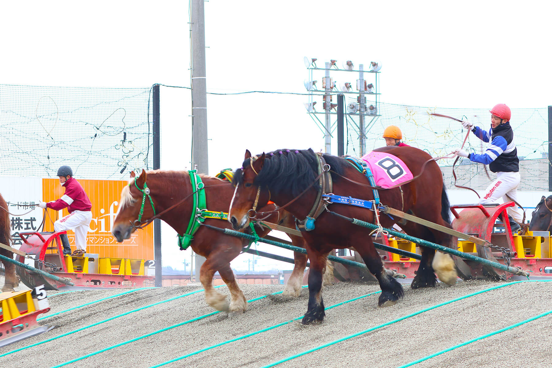 星野リゾート トマム スキー場から車で1時間ほどの距離にある帯広は、冬の北海道をもっと楽しみたいという人の立ち寄り先としておすすめのエリアです。帯広を代表する観光の見どころといえば、最大1tの鉄ソリを曳いて馬たちが競い合う世界で唯一の競馬「ばんえい競馬」です。幅1.8m×10のセパレートコースは直線200m。サラブレッドの約2倍もある体重1t前後の馬たちが、スピードとパワーを競いゴールを目指します。冬の間でも大きな体で懸命に走る馬たちの姿を、観戦スタンドからだけでなく、近くで並走しながら応援できるのもこの競馬場の魅力です。