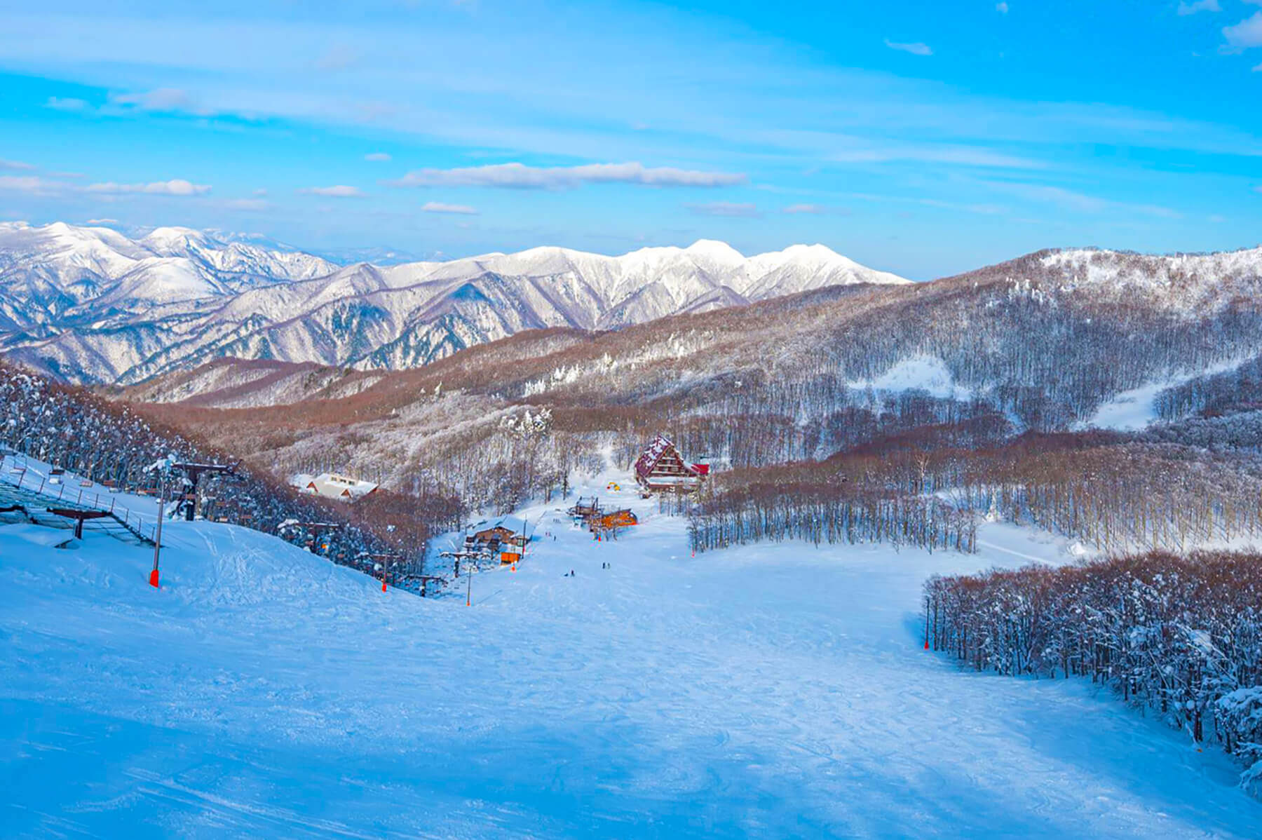 新幹線の停車駅・山形駅から蔵王温泉バスターミナルまでバスで約40分。そこから歩いていける距離にありアクセス良好な蔵王温泉スキー場は、総滑走面積127.22ヘクタール、最大滑走距離約10キロの東北最大級のスノーリゾートです。樹氷原を滑走できるなど変化に富んだ14のゲレンデと12のコースのうち初心者と中級者向けのコースが全体の80%を占めているので、それぞれのレベルに合わせてスキーやスノーボードを楽しむことができます。