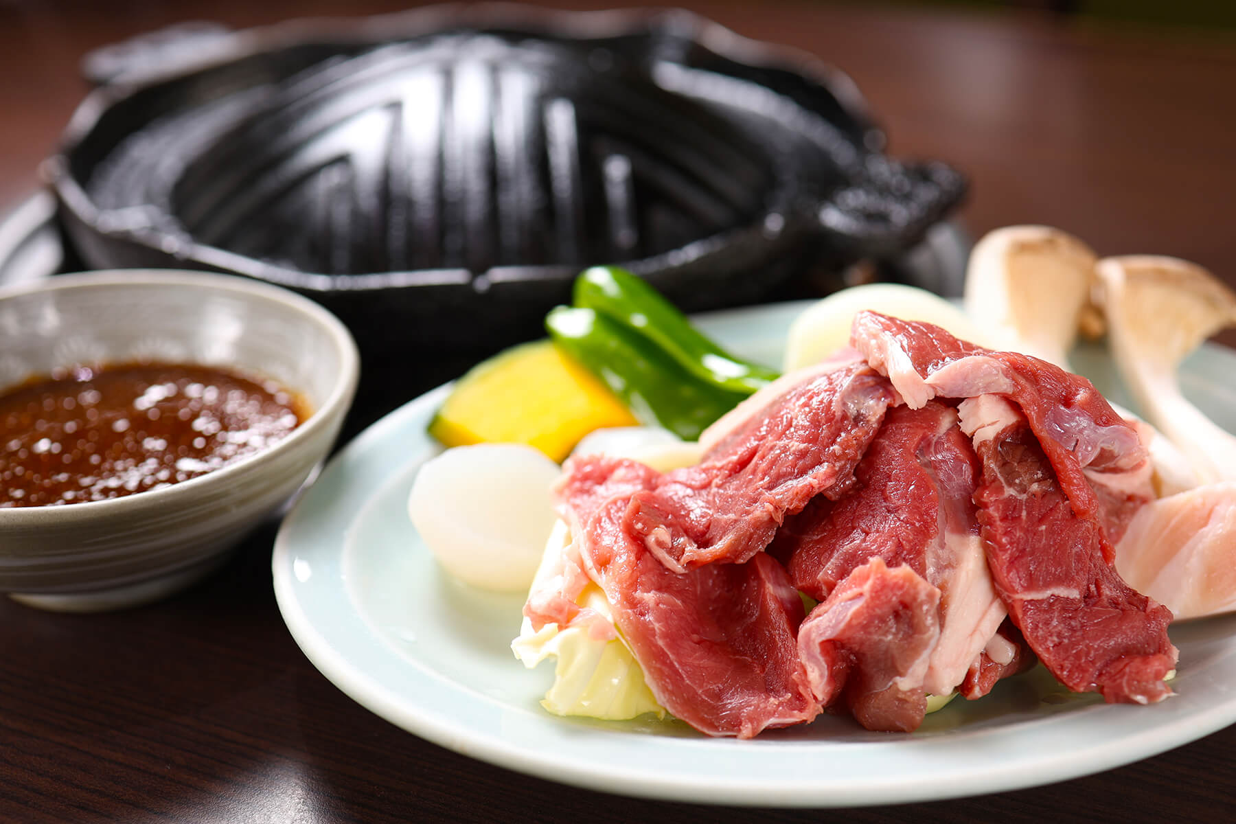 このエリアを代表するご当地グルメはジンギスカンで、蔵王温泉の名物料理にと考えられました。人気店「ろばた」の生ラム肉は手切りのため肉厚でジューシー。タレは約半年以上熟成させ、フルーツやニンニクの旨みを感じる醤油ベースのさっぱりとした味付けです。各店で味付けにこだわった、特製ダレを作っています。