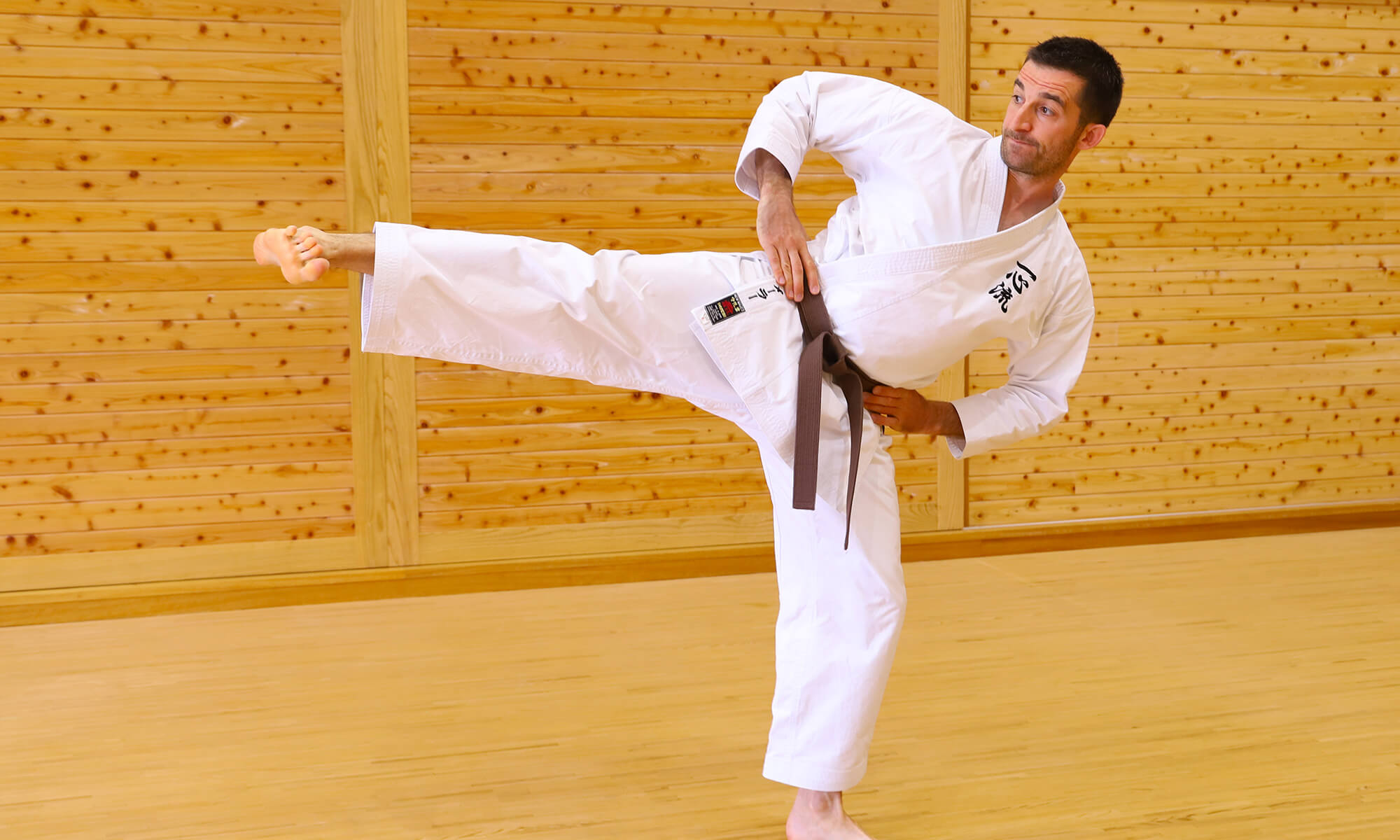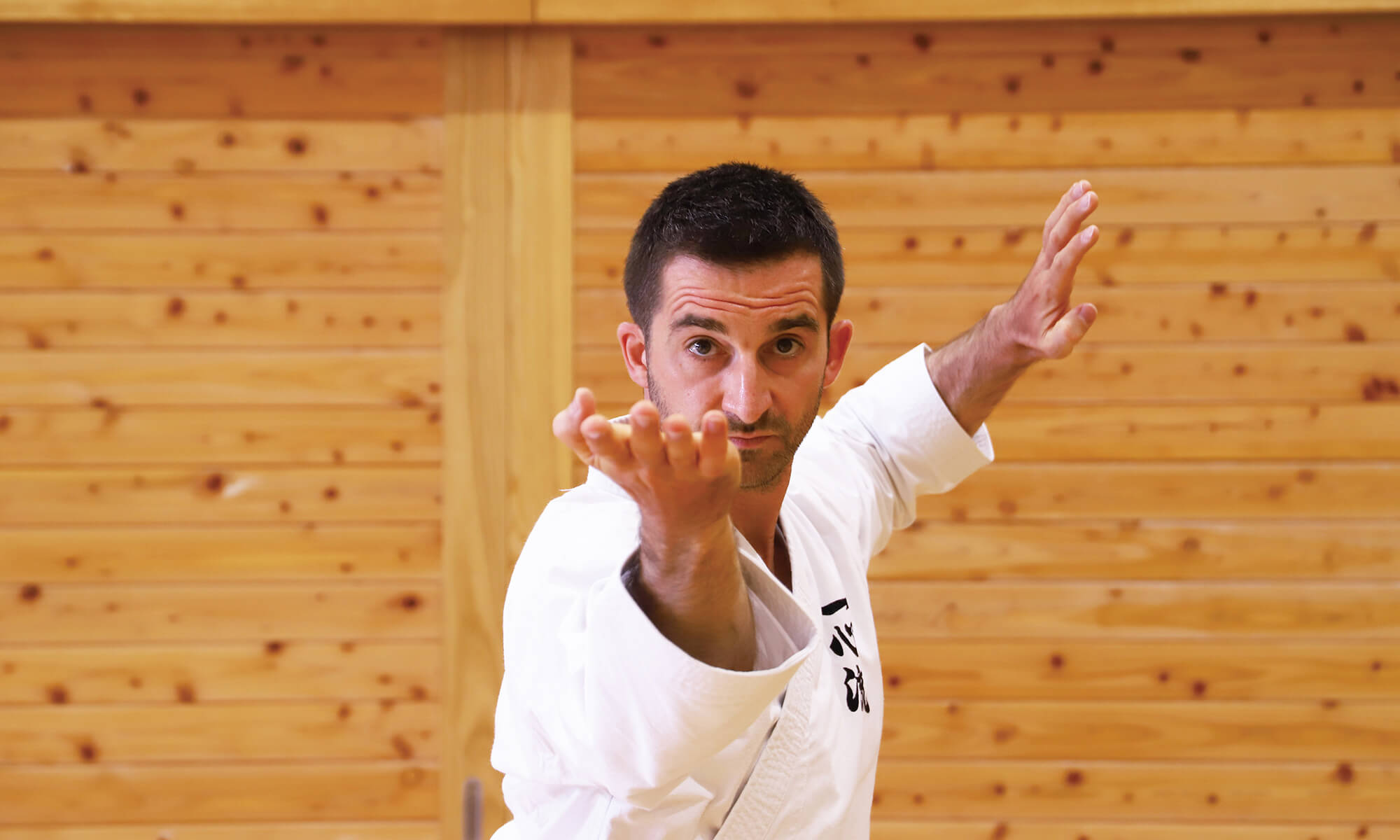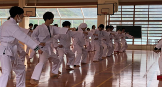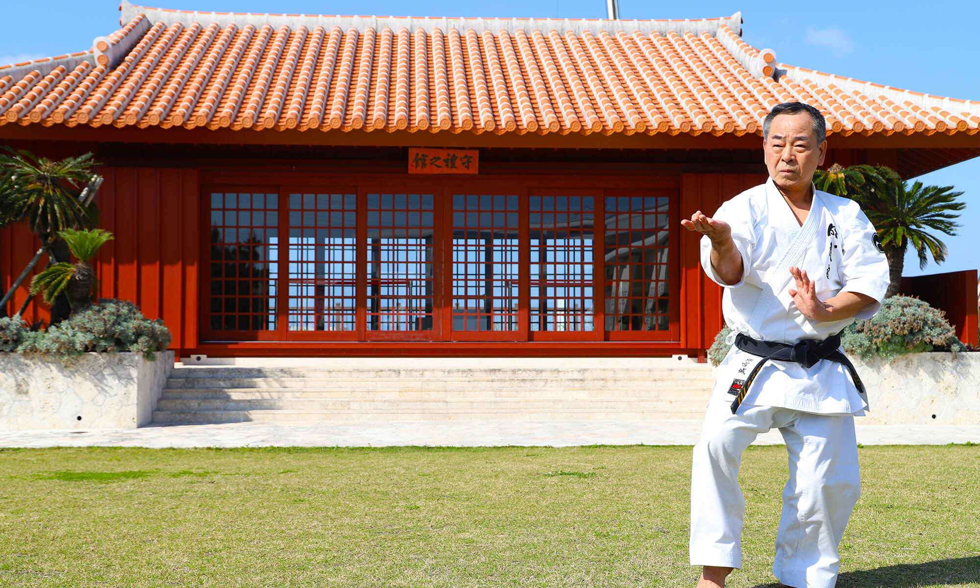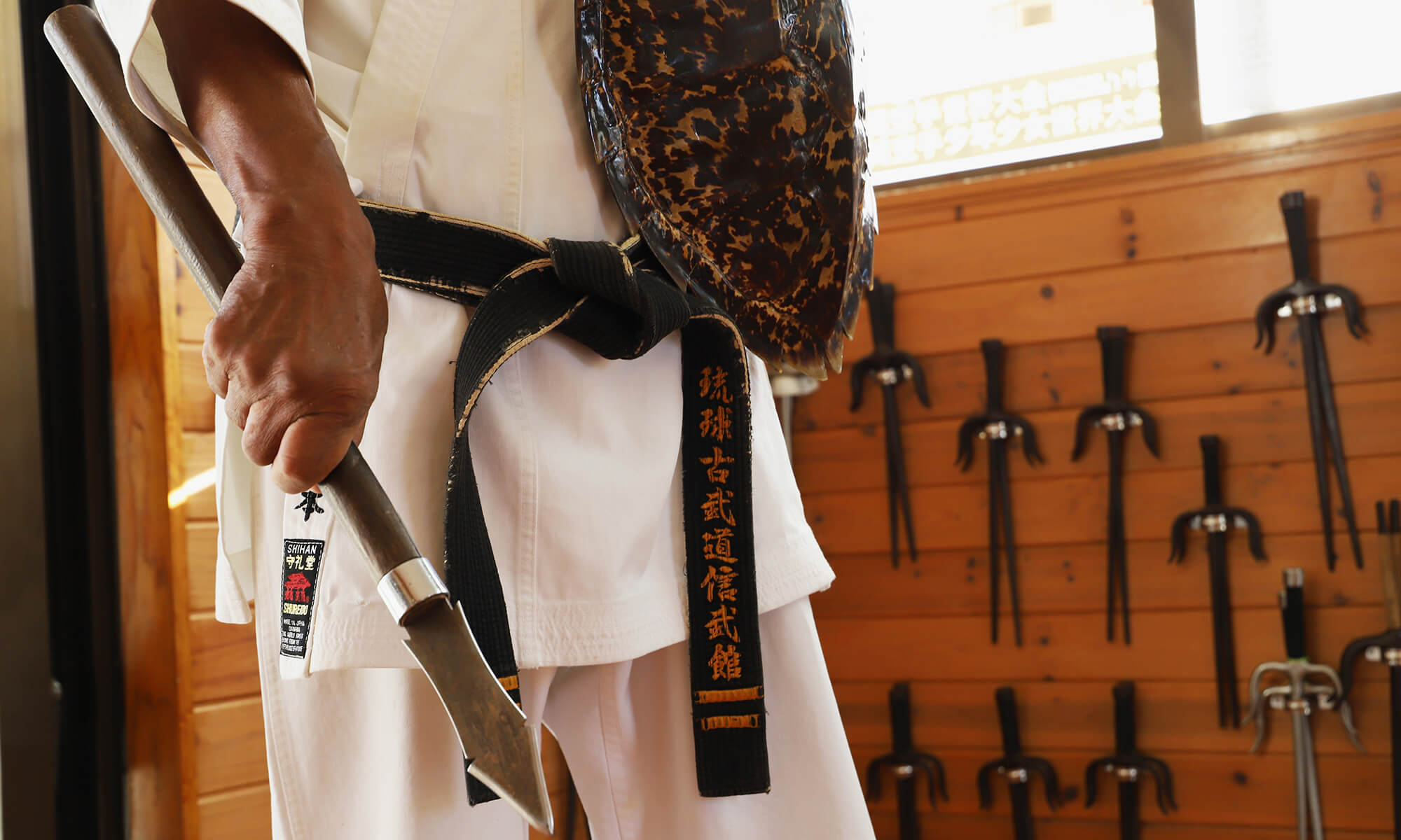 空手は沖縄在来の武術「ティ(手)」と中国武術等が何世紀もかけて融合し独自の武術として発展してきました(※諸説あり)。そして、沖縄から世界へ広まっていき、今や世界の空手愛好家数は1億3000万人以上とも言われています。沖縄空手は、現在、しょうりん流系、剛柔流、上地流と、棒やヌンチャク、サイなどの武器を使用する古武道が主要4流派とされています。道場で行われる夜の通常稽古だけではなく、沖縄空手4流派体験や朝稽古など、稽古メニューは多彩で、海外からも多くの人が参加しています。
