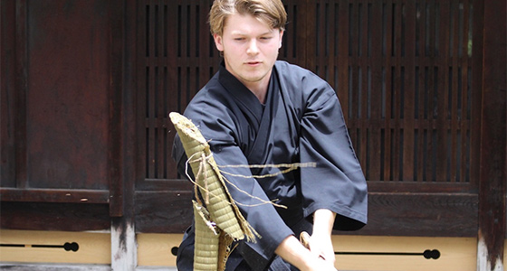 日本刀を使用し、抜刀の技術などを鍛錬する居合道。その始祖とされる林崎甚助重信(はやしざきじんすけしげのぶ)氏は、1542年、羽州楯岡林崎村(現在の村山市林崎)で生まれました。居合神社(正式名称:熊野居合両神社)に隣接する道場では、居合道の体験プログラムを行っています。居合道の形・初発刀(しょはっとう)を高段者から学び、真剣で畳筒を斬る試斬(しざん)体験は人気のプログラムで、そのほか演武や試斬の見学プログラムも実施。真剣を使っての迫力ある抜刀術は見ものです。