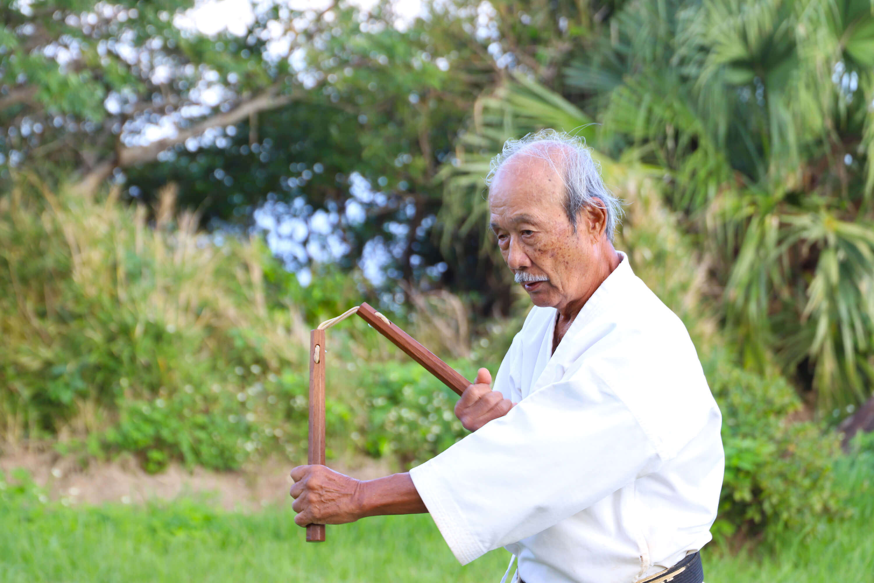沖縄本島から西へ約100km、飛行機で約30分の美しい珊瑚礁に囲まれた久米島は、琉球古武道の大家・平信賢(たいらしんけん)氏が生まれ育った場所です。平信賢氏は20代で空手をその後、琉球古武術の鍛錬にも励み、1940年に琉球古武道保存振興会を設立して会長に就任。その一生を古武道の研究・普及・発展に尽力しました。