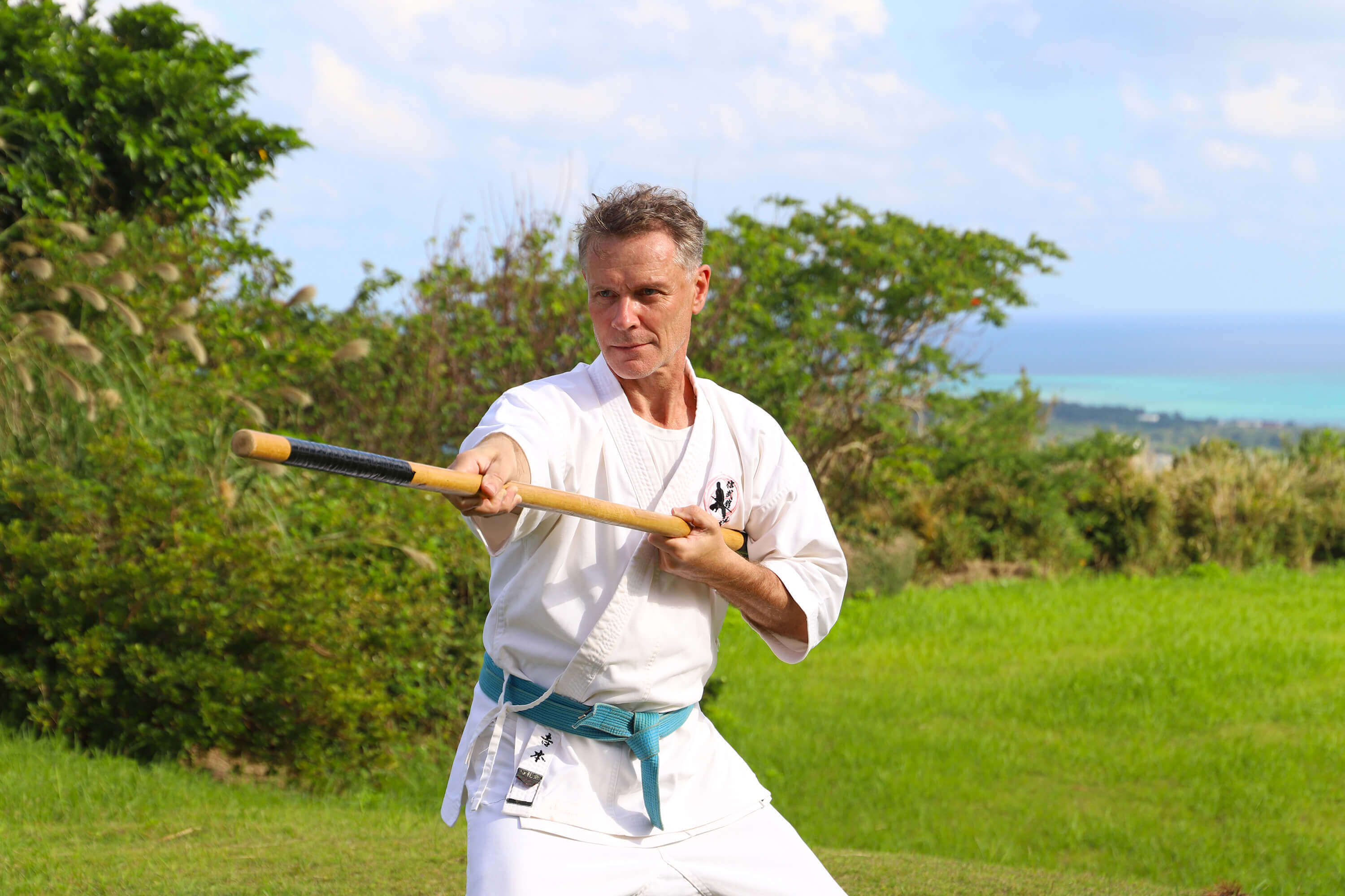 指導してくれるのは、琉球古武道を中心に沖縄小林流空手を教えている吉本道場の吉本景正氏。琉球古武道の基本的な動きを、実践を踏まえながら稽古してくれます。