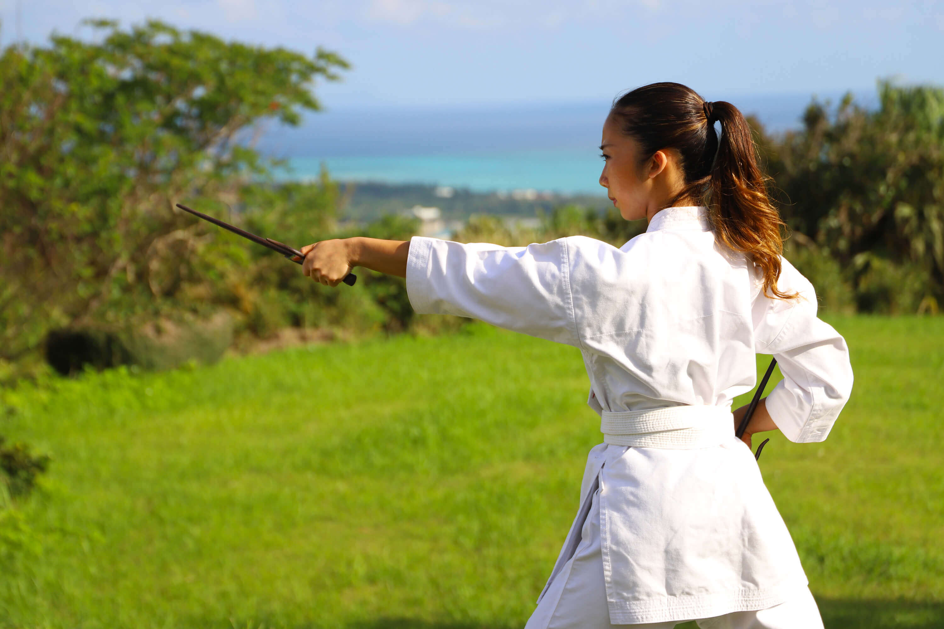 久米島での琉球古武道体験は、島の自然や風を身体全体で感じられるように登武那覇城跡などの絶景スポットで行います。