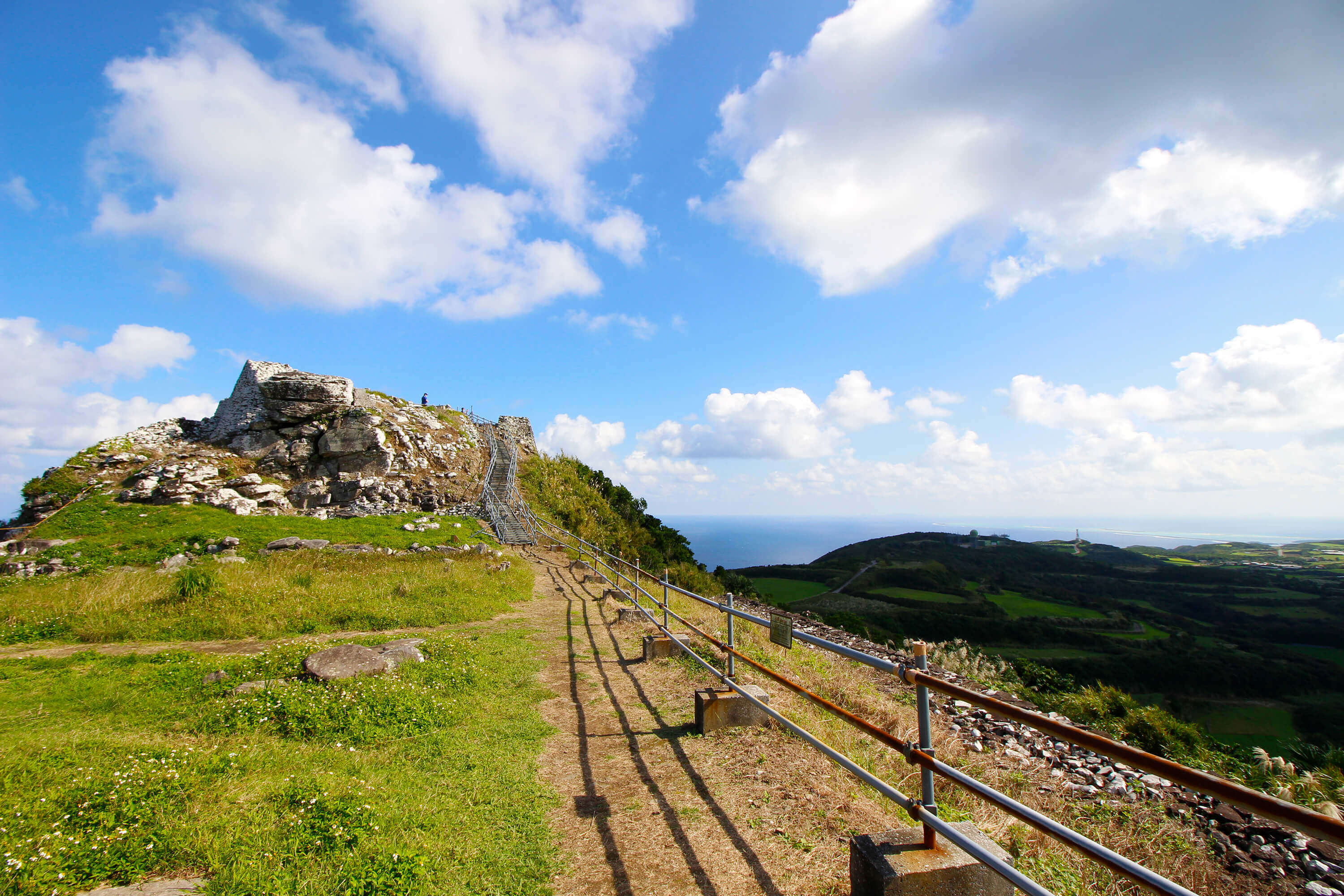 久米島には城跡がいくつか残っていますが、なかでも宇江城(うえぐすく)城跡は標高約310mの宇江城岳山頂にあり、沖縄県内の城のうち最高所に位置しています。360度のパノラマビューで島のほぼ全体が望めます。具志川(ぐしかわ)城跡は15世紀始めに築かれたとされ、海に面した石灰岩の丘陵にあります。
