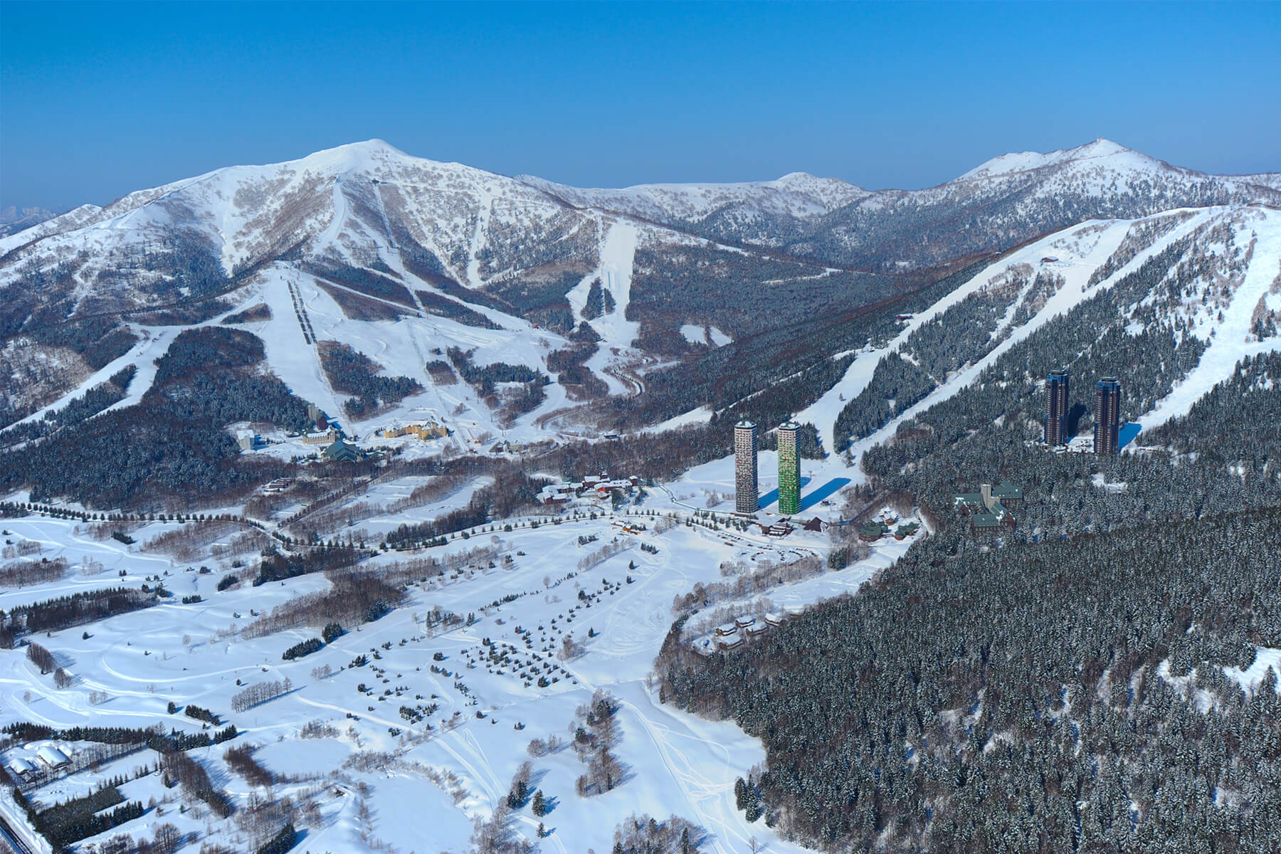 2つの山をまたいだトマムスキー場のコース面積は123.9ヘクタールと広大です。上級者向け4、中級者向け14、初級者向け10、初心者向け1と、全29あるコースはそれぞれのスキルによって分かれているので、初心者も上級者も、子供も大人も楽しめます。上級者限定解放エリアでは、ヘルメットを着用などのルールに沿うことで、コース外の林間エリアなど自然の斜面を滑走することも可能です。