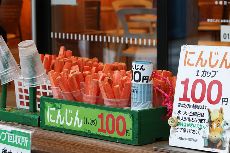 場内には「ふれあい動物園」が併設されていて、ニンジンの餌やり体験や馬たちとの記念撮影もOK。ポニーやウサギ、ヤギなどともふれあえます。